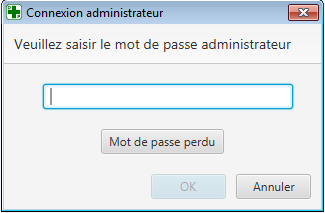 Pour revenir en mode Administrateur, il est nécessaire de se reconnecter par le menu ‘Accueil’ / ‘Connexion administrateur’. Un mot de passe est demandé et, en cas d’oubli, un message de récupération peut être envoyé à l’adresse email qui a été saisi lors de l’activation du mode.