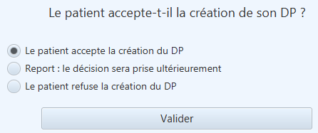 INFORMATION À partir de 3 REFUS, le DP sera BLOQUÉ pour toute création ou consultation. Cette décision est par conséquent importante à prendre en compte. Le déblocage est cependant possible en passant par une procédure spécifique. Contactez le SUPPORT CNOP par téléphone ou via le Formulaire de contact du menu Aide pour plus de précision. |