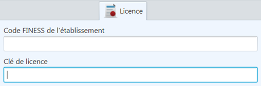 L’onglet ‘Licence’ permet le paramétrage de la Clé de licence du Code FINESS. Une fois le Code FINESS et la Clé de Licence saisis, l’utilisateur doit cliquer sur le bouton 'Tester la licence' afin de permettre au module de vérification des licences de valider et d’autoriser l’accès.