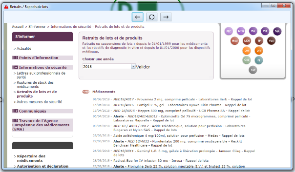 Le menu ‘Outils’ / ‘Service DP’ / ‘Retraits / Rappels de lots’ permet d’accéder au site dédié aux Rappels de lots.