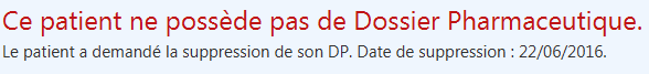 INFORMATION Seuls les Pharmaciens peuvent accéder à la Suppression de DP. |
